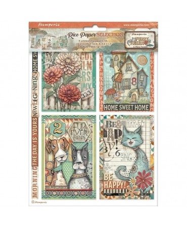 Papel arroz Stamperia A4 (6UD) Furry Friends