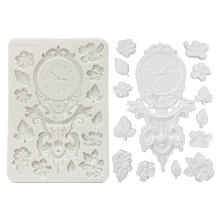 Molde STAMPERIA silicona A5 Gardens of Time Clock and Flowers