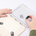 La base de la Stamp Easy+ es totalmente magnética y tiene una superficie antideslizante. Esto garantiza que la plataforma permanezca firmemente en su lugar durante el estampado. Utiliza los dos imanes incluidos para fijar tu papel o cartulina a la placa base. Tanto en las placas de estampación transparentes como en la base magnética, la alineación del papel se indica en centímetros y pulgadas. La herramienta Stamp Easy+ es perfecta para manualidades con papel, como la creación de tarjetas y la decoración de un bullet journal o un álbum de recortes.