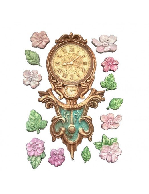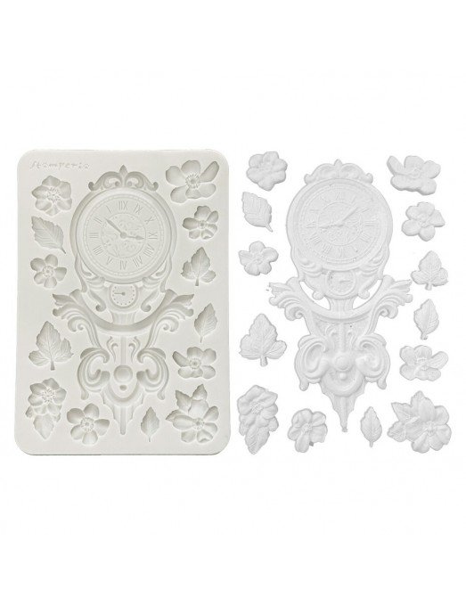 Molde STAMPERIA silicona A5 Gardens of Time Clock and Flowers