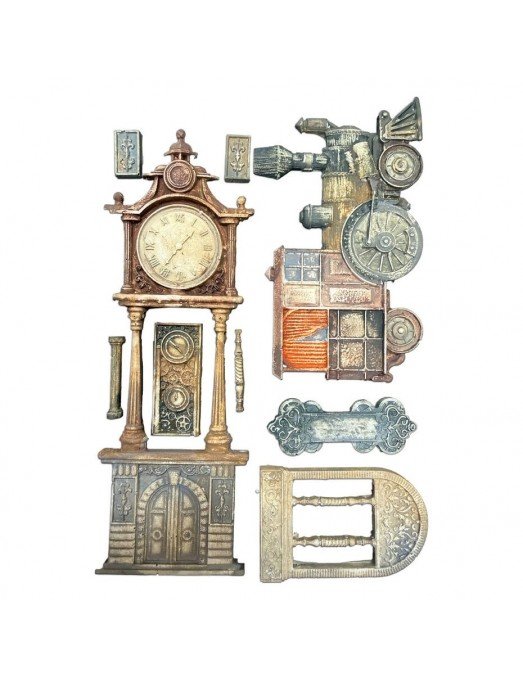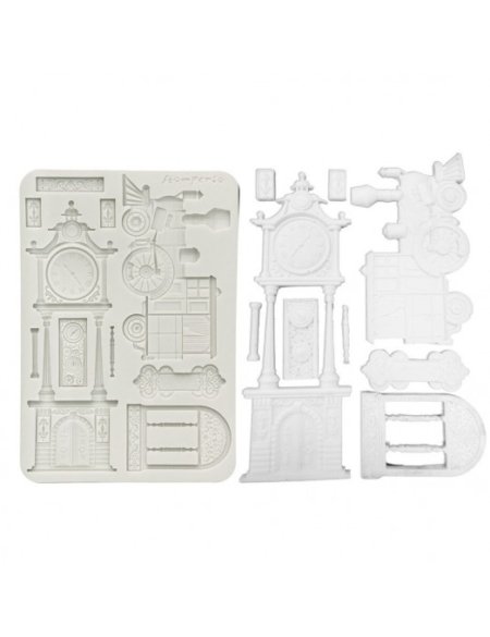 Molde STAMPERIA silicona A5 Gardens of Time Train and Longcase Clock