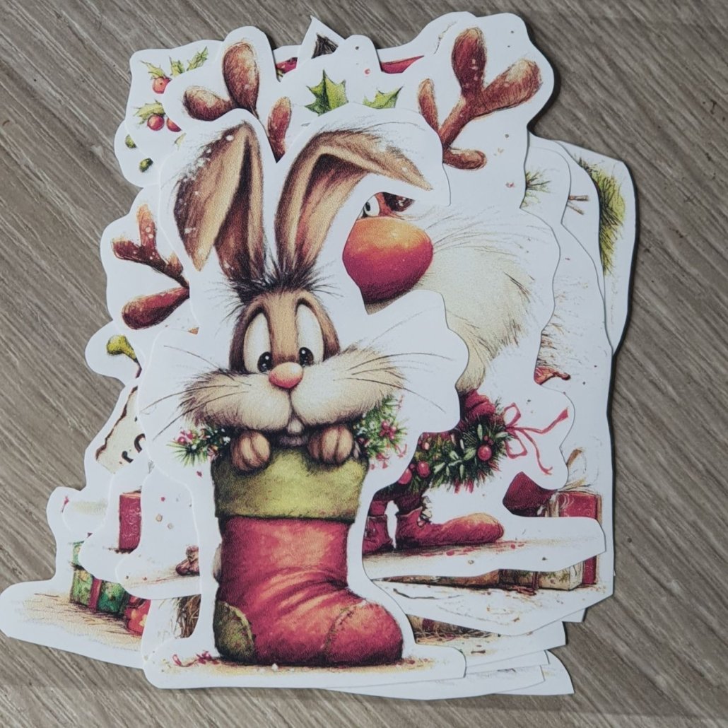 12 Stickers fondo blanco colección HUELLAS EN NAVIDAD